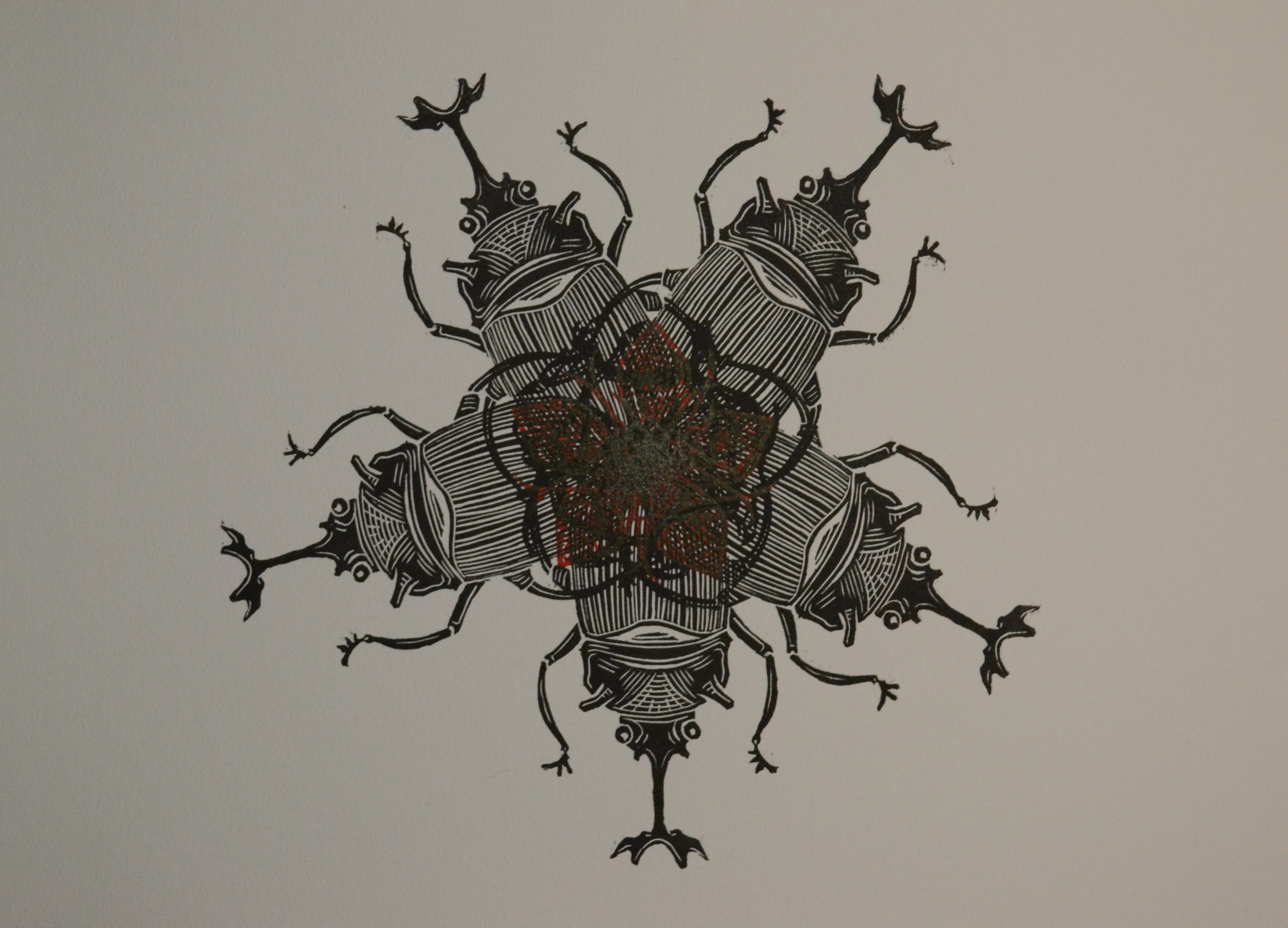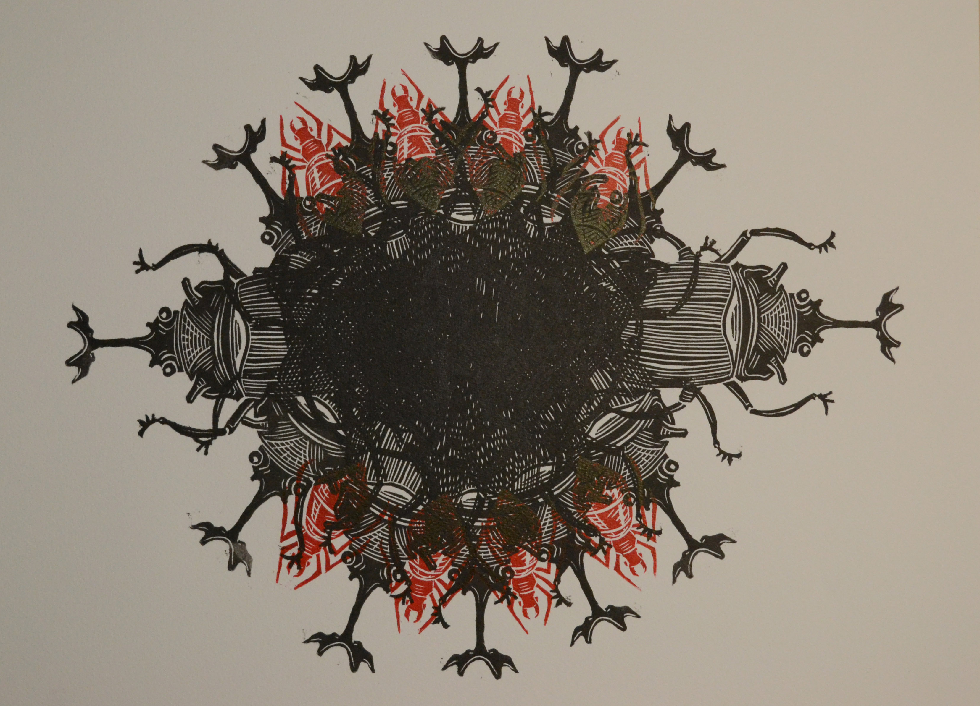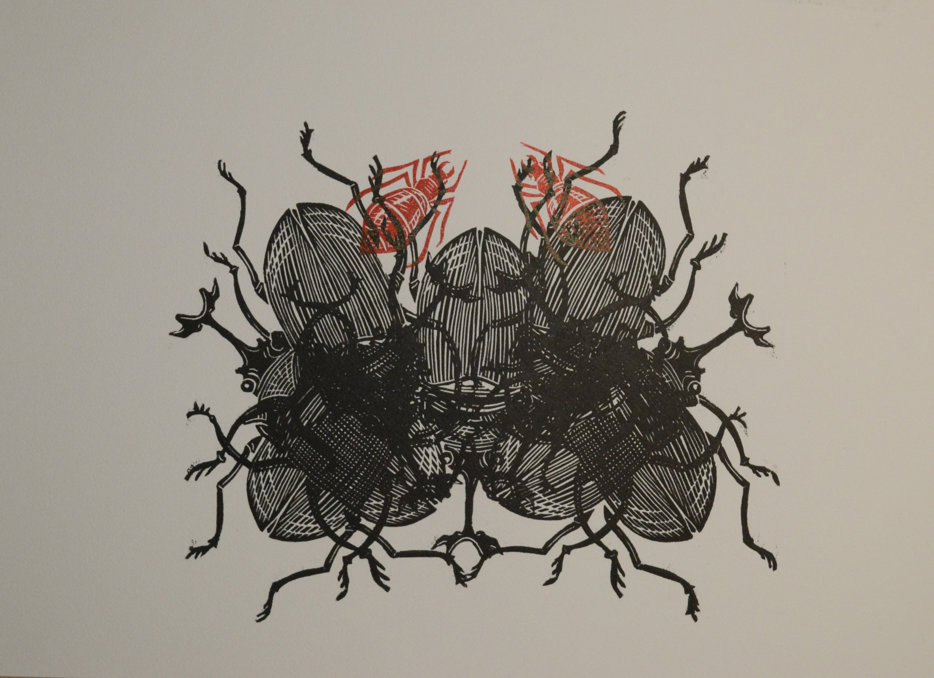 Entomofobia es una serie basada en las láminas de Rorschach que desarrollé a partir de un método de impresión primario: La linografía. Tomando formas básicas de insectos para crear formas más complejas, la serie busca crear una conversación con los miedos más profundos de espectador, esos que no siempre tienen una forma definida.
